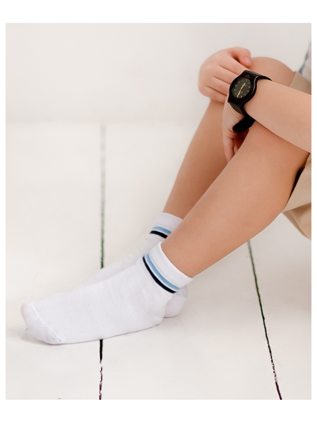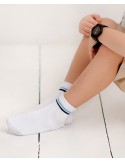 Sports socks are the perfect choice for physically active children. They are great for playing ball games, running, or cycling. A subtle stripe pattern just below the cuff makes these socks very versatile and easy to match with almost anything. Different color variations of the stripes give them character and expand the options to choose the model that suits you best. Our highest quality cotton used in their production guarantees comfort and full freedom of movement.