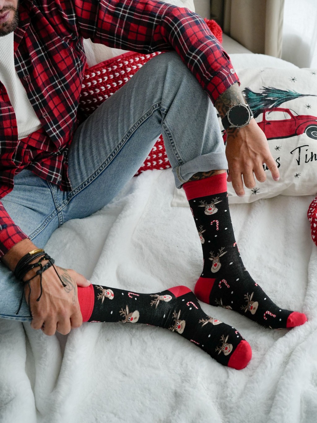 Cheerful, happy, and delightfully surprised reindeer team up with festive candy canes to bring the magic of the holidays to your feet! Keep the Christmas spirit alive all season long with these premium cotton socks, offering all-day comfort and total freedom of movement.