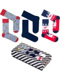 The men's Christmas set includes 3 pairs of men's Christmas socks. Of course, we have packed them especially for you in an attractive cardboard box with a view. The set includes two pairs of socks with a cheerful Christmas pattern and one pair of plain dress socks.