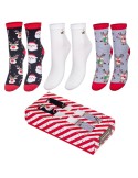 The women's Christmas set includes 3 pairs of women's Christmas socks. Of course, we have packed them especially for you in an attractive cardboard box with a view. The set includes two pairs of socks with a cheerful Christmas pattern and one plain pair with a decorative gold star.Â