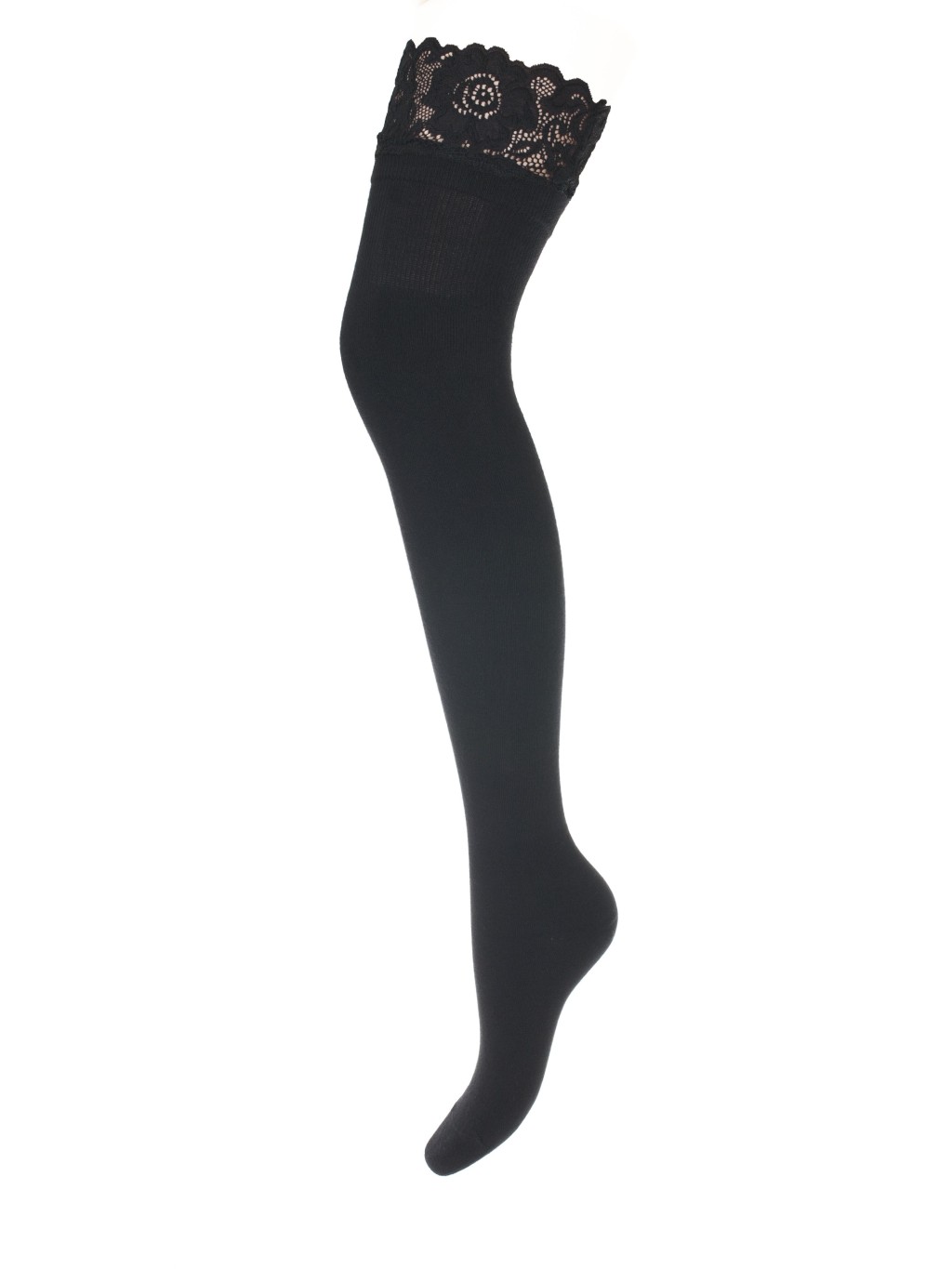Long women’s cotton over-the-knee socks with beautiful lace around the thigh. Thanks to their unique length just above the knee, they are an ideal choice for highlighting any style.