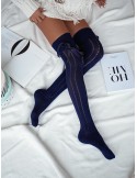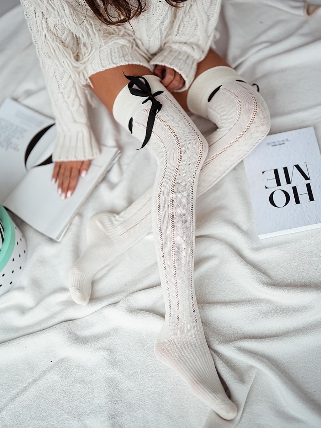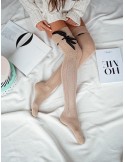 Openwork ribbon tied over-the-knee socks BRAID