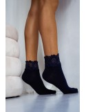 Women's cotton socks with a wide lace top 1061