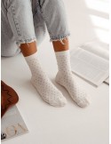 Stylish ribbed women's socks featuring a delicate dot pattern, offered in multiple color options. Designed with versatility in mind, they perfectly complement any outfit—whether you want to follow current trends or set your own. Made from premium quality cotton, these socks ensure exceptional comfort and unrestricted movement all day long.