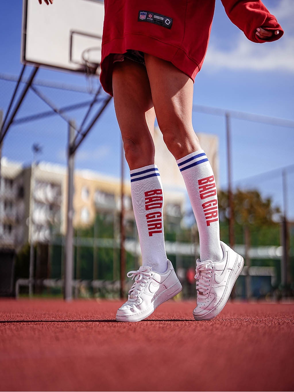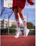 Podkolanówki z dużym napisem oraz paskami na ściągaczu doskonale nadadzą się do przeróżnych kompozycji. Nadadzą się zarówno jako zwykły dodatek do stroju a także jako otwarte podkreślenie charakteru. Komfortu oraz wygody użytkowania dodaje wykorzystana przez nas do produkcji najwyższej jakości bawełna.