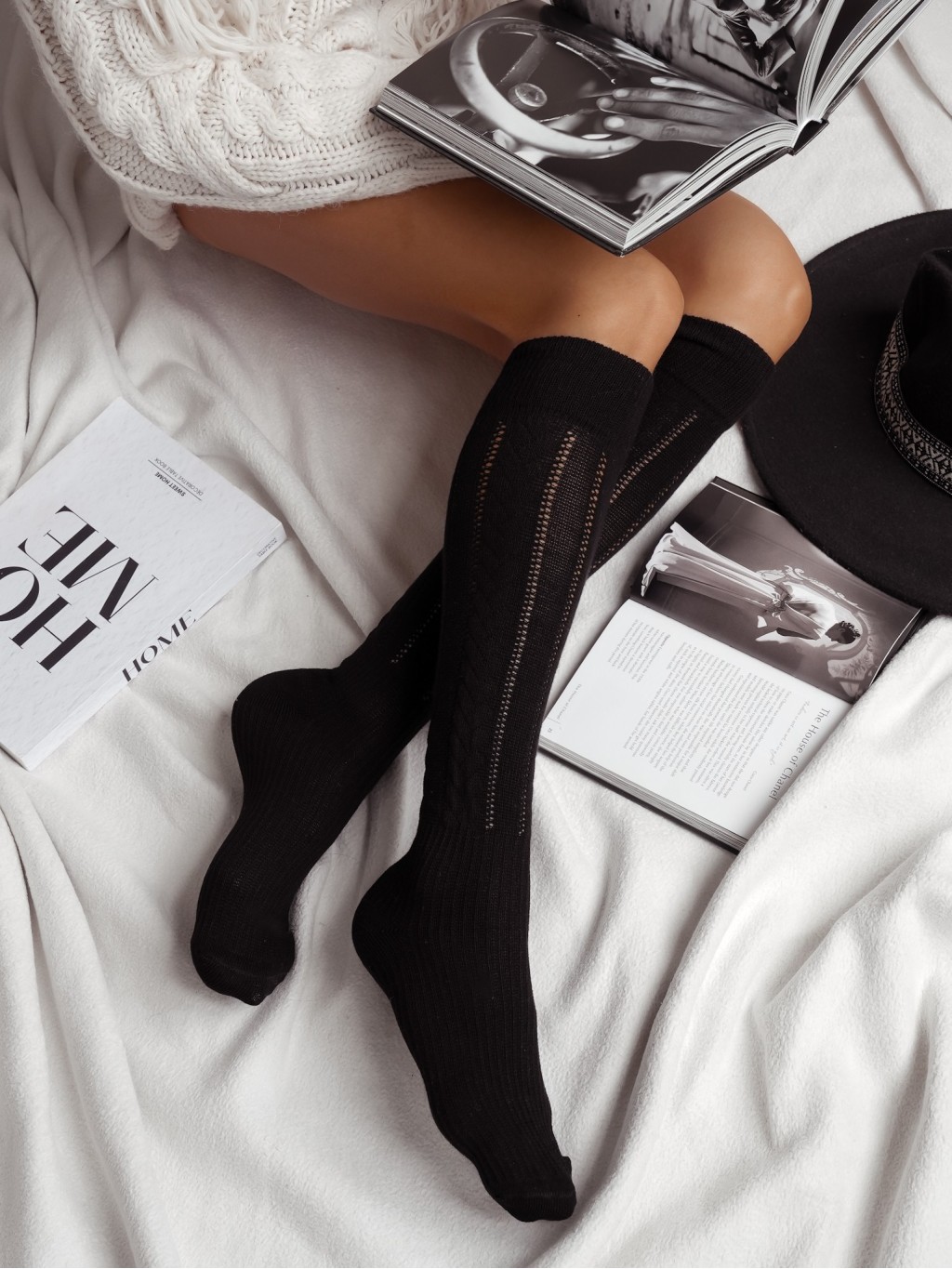 Podkolanówki ażurowe ze wzorkiem zaplecionym niczym warkocz to coś, co zdecydowanie przykuje wzrok na nieco dłużej. Efekt trójwymiarowy w który w zasadzie trzeba się nieco wpatrzeć, ale mimo wszystko dopełnia te podkolanówki wprost idealnie.