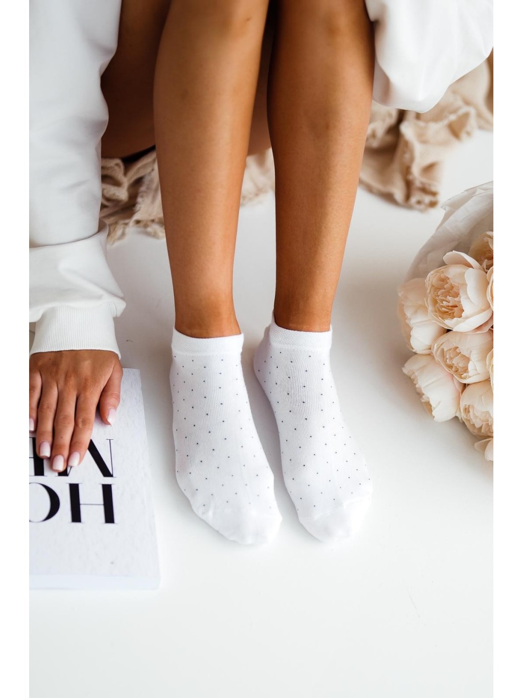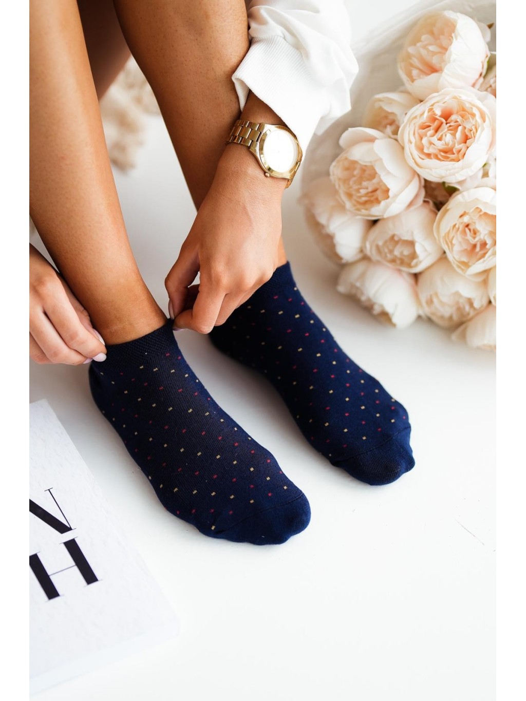 Wyróżniające się kropeczki na tle głównego koloru to subtelny, aczkolwiek bardzo potrzebny dodatek do wielu stylizacji. Przełamuje klasyczne podejście gładkich skarpet ukazując piękno, które tkwi w szczegółach.