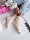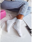 Ażurowy wzór na naszych skarpetkach to stylowe połączenie klasyki z subtelnością. Doskonałe dla osób, które potrzebują wytrzymałych skarpetek na co dzień, ponieważ bawełna wykorzystywana do ich produkcji sprawia, że posłużą Wam przez długi czas a o uczuciu dyskomfortu będziecie mogły zapomnieć.