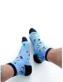 Hantle, sztangi, mięśnie – to słowa, które z pewnością poruszą niejednego faceta, niejednego zainteresują i być może skuszą do zakupu tych skarpetek 😏Tematyka zdrowego podejścia do życia zobrazowana na parze naszych skarpet zarówno dla tych, którzy aktywnie ćwiczą na siłowni, jak i dla tych, co dopiero to planują! Najwyższej jakości bawełna gwarantuje komfort użytkowania oraz pełną swobodę ruchu podczas użytkowania naszych skarpetek.