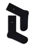 Garniturowe skarpety z subtelnym wzorkiem, który nie rzuca się w oczy zachowując przy tym elegancję i subtelny styl. Najwyższej jakości bawełna, która została wykorzystana do produkcji tych skarpet gwarantuje komfort oraz pełną swobodę ruchu podczas ich użytkowania. Skarpety doskonale dopasują się do pełnego zestawu na wyjątkowe chwile w Waszym życiu i towarzyszyć Wam będą przez cały ten czas.