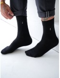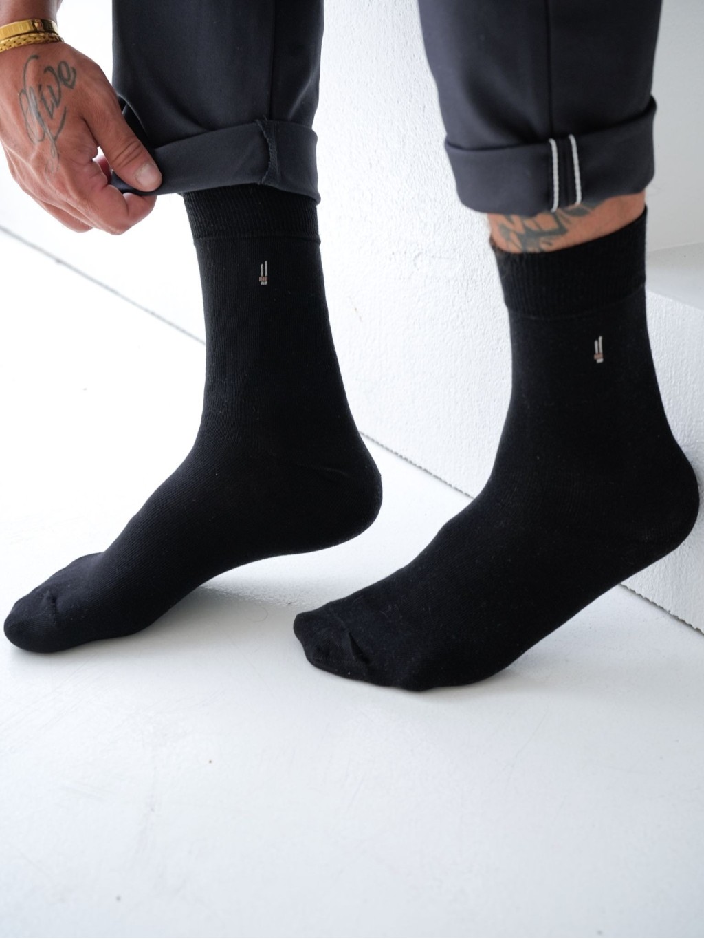 Garniturowe skarpety z subtelnym wzorkiem, który nie rzuca się w oczy zachowując przy tym elegancję i subtelny styl. Najwyższej jakości bawełna, która została wykorzystana do produkcji tych skarpet gwarantuje komfort oraz pełną swobodę ruchu podczas ich użytkowania. Skarpety doskonale dopasują się do pełnego zestawu na wyjątkowe chwile w Waszym życiu i towarzyszyć Wam będą przez cały ten czas.