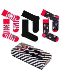 Zestaw świąteczny męski to 3 par skarpetek świątecznych męskich. Oczywiście specjalnie dla Was zapakowaliśmy je w estetyczne kartonowe pudełko z okienkiem. W zestawie znajdują się dwie pary skarpetek w wesoły, świąteczny wzór oraz jedna gładka skarpetka garniturowa.