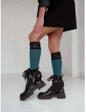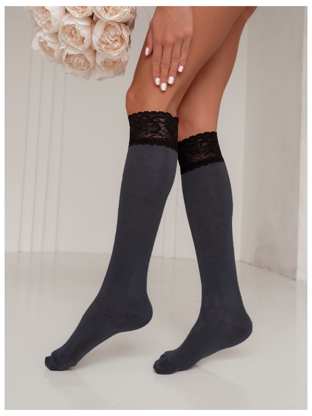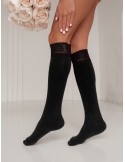 Podkolanówki damskie gładkie z szeroką koronką 0477